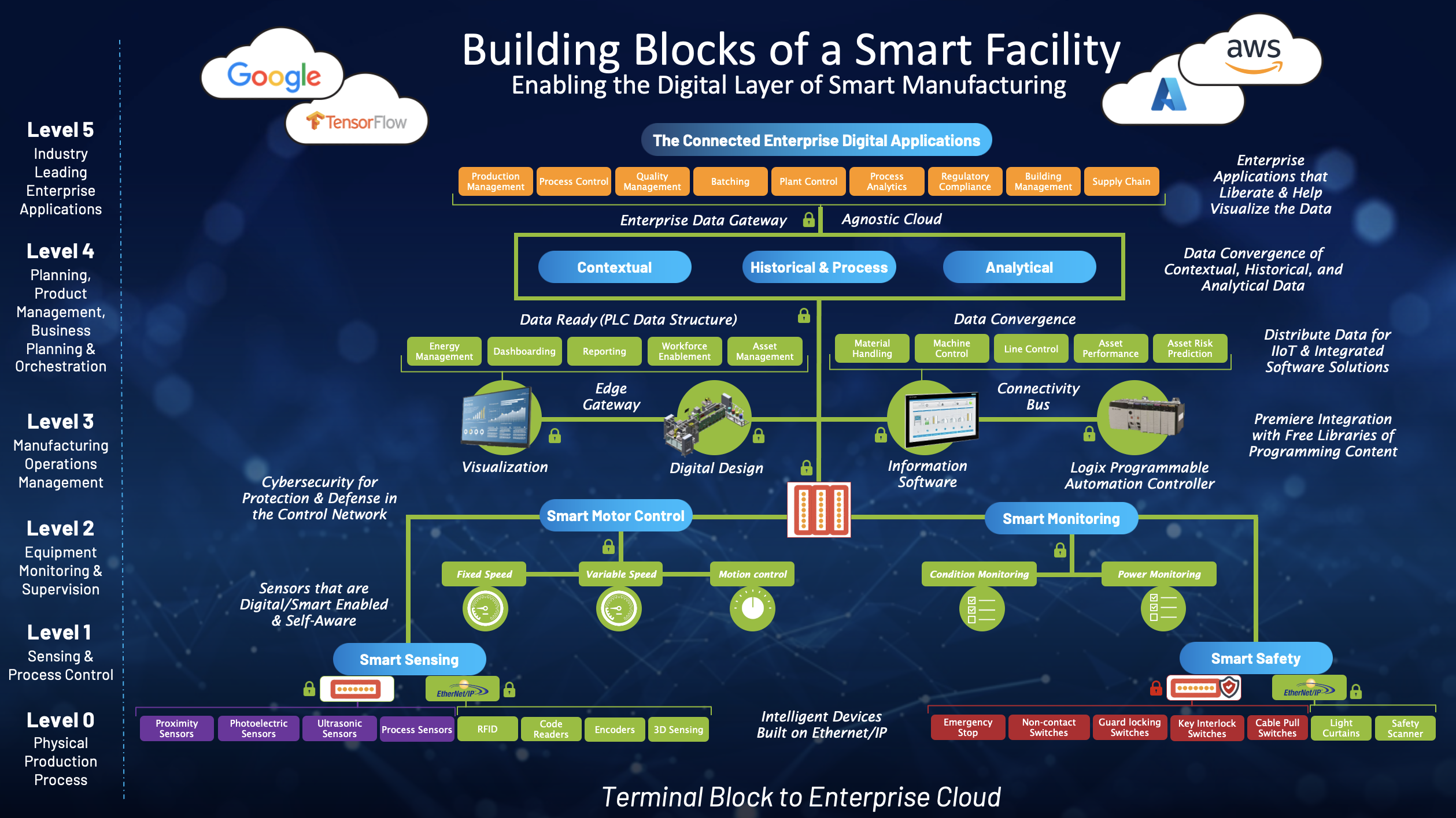 Enterprise Architecture for OT/IT convergence establishes a seamless digital pathway from the terminal block to the cloud, integrating industrial control systems (ICS), SCADA, and edge devices with IT infrastructure through secure data pipelines, enabling real-time analytics, predictive maintenance, and cloud-based AI insights.